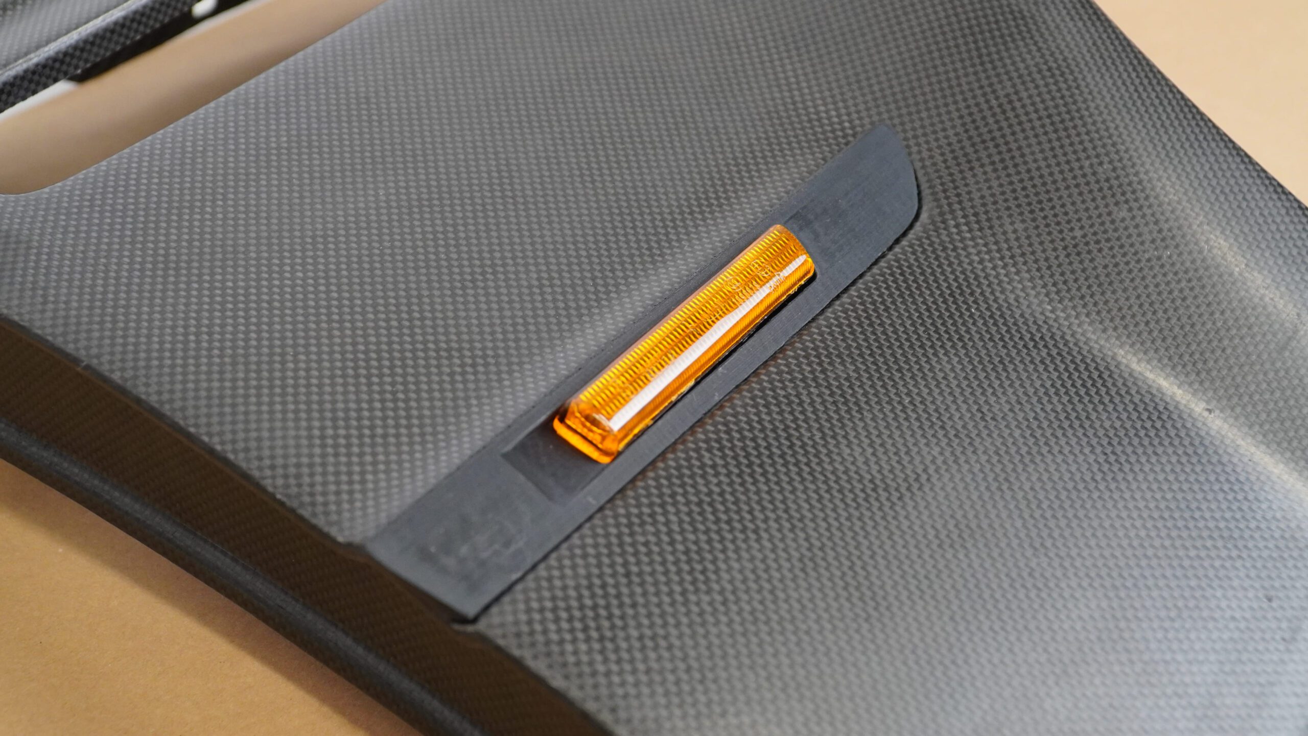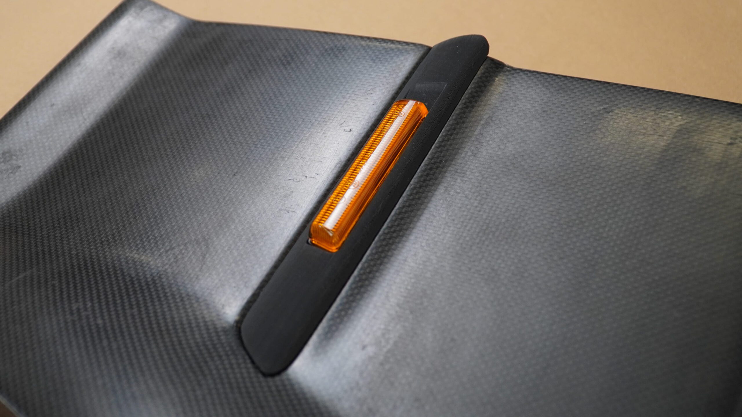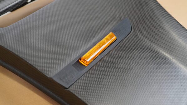 This custom trim is specifically designed for the carbon M3 Touring front fenders and comes prepared for turn signal installation, just like the OEM M3 trim. It fits the carbon fenders perfectly, eliminating the need to shorten or modify OEM Touring trims. Made from high-quality 3D-printed plastic, it provides a factory-like fit. A ready-made solution that saves you time and effort.